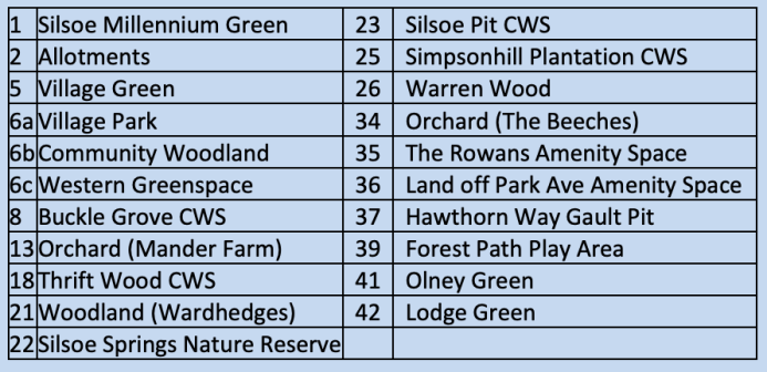 The 22 areas listed below and identified in Illustration 2b, with maps to identify their specific location following this policy, are designated as areas of Local Green Space, where development is ruled out other than in very special circumstances. They are listed as -