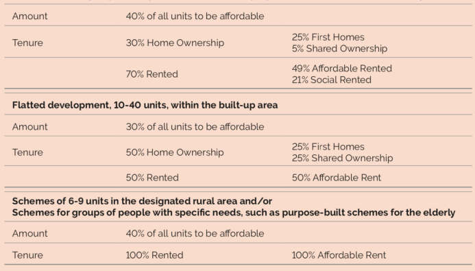2. The Council will expect affordable housing to be delivered in the following amount in the following tenure type: