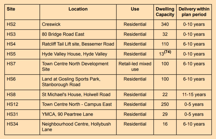 In accordance with Policy SP 2 and Policy SP 3 the sites below are allocated on the Policies Map for development in Welwyn Garden City.